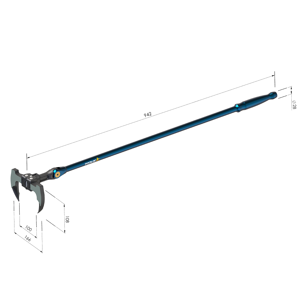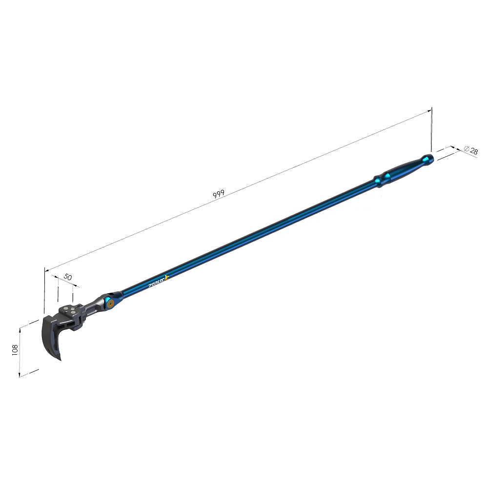 Adjustable head with incremental angles of 18 degree which allows User to choose up to 11 different angles for prying in different comfined space